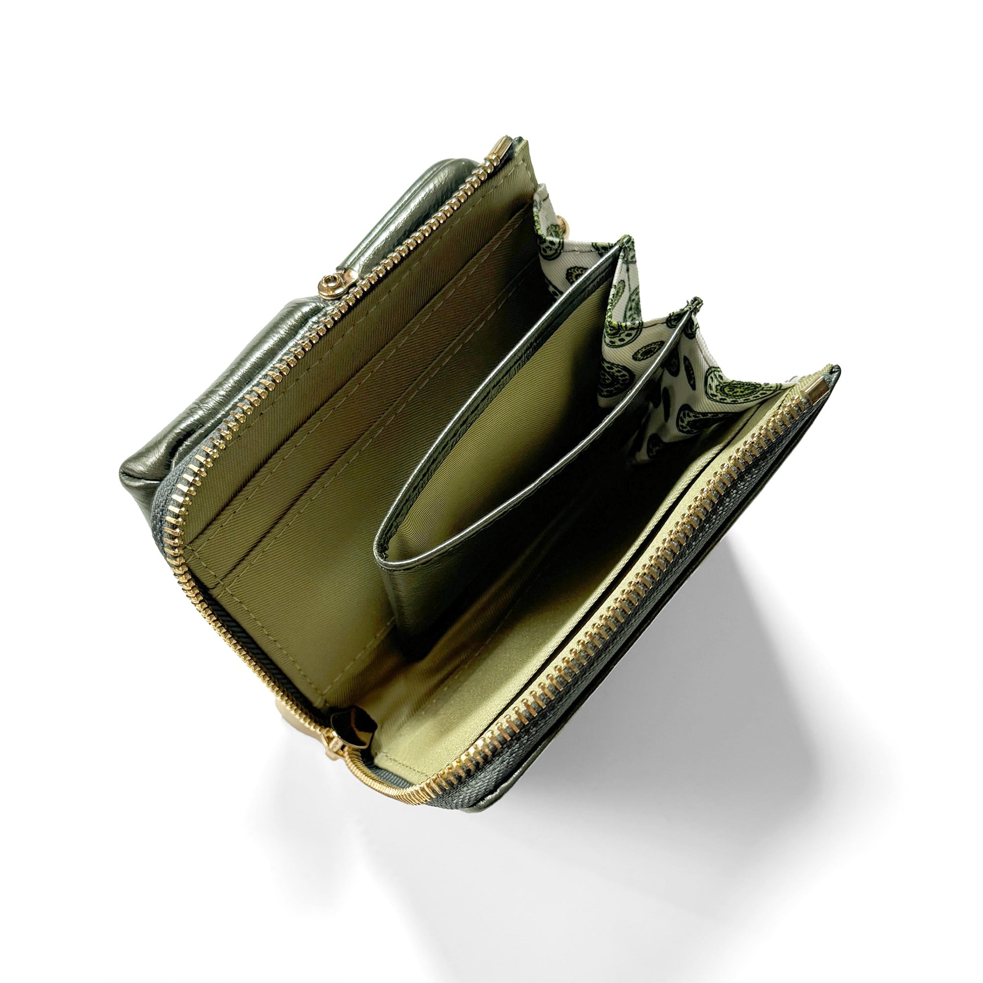 中央のコインケースは、小さいけれどマチ付きで、指先でも小銭を取り出しやすい形状