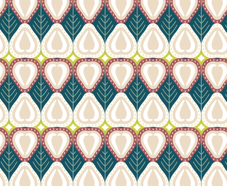 苺の断面をイメージした大胆な総柄です