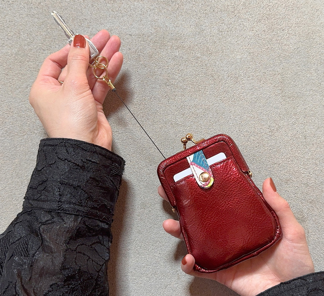 がま口の中を開けると、底の方に伸びるリールがちょこんと配置