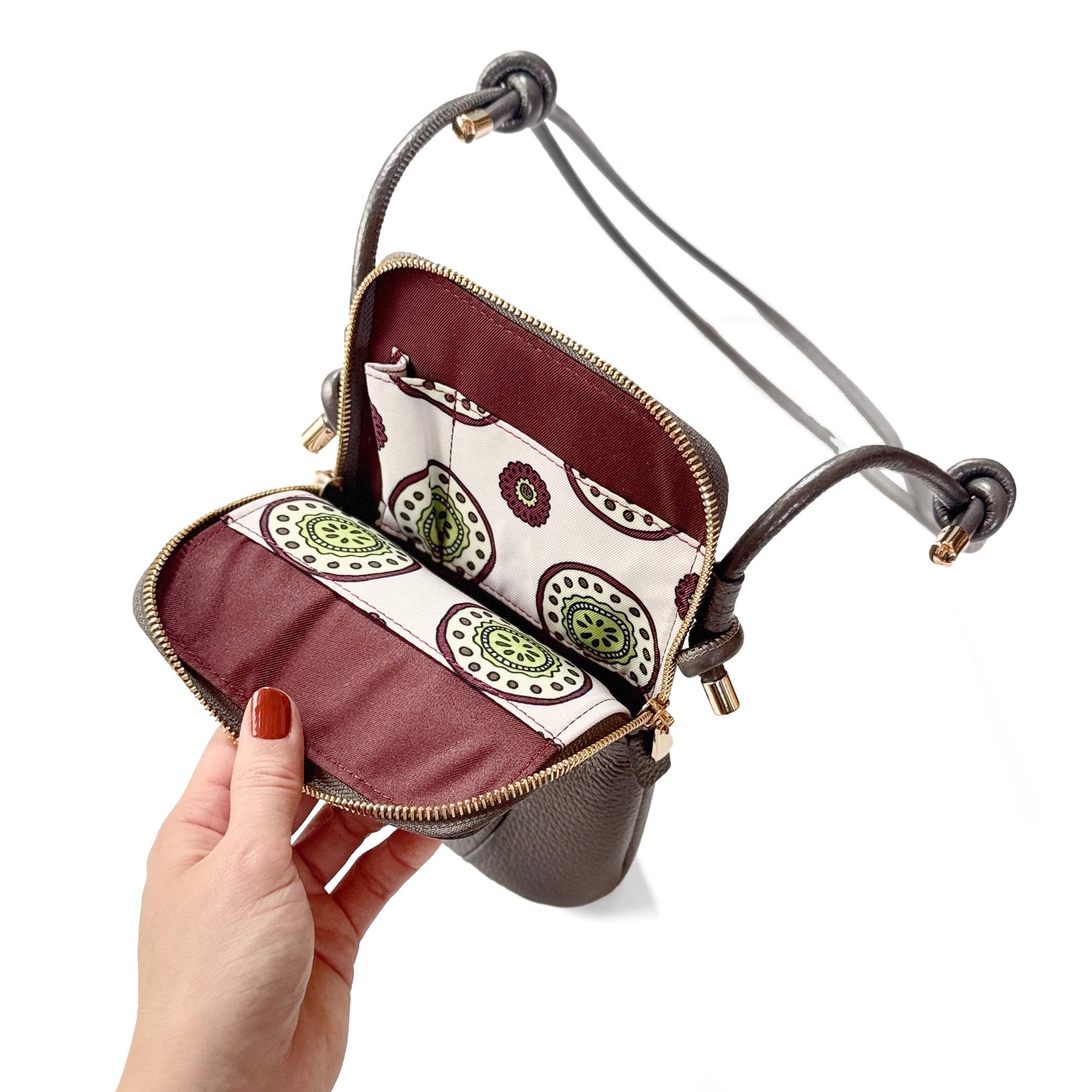 ショルダーバッグにはスマホ、ミニ財布、カード、リップクリームなど、必要最低限の荷物を小さく収納できます