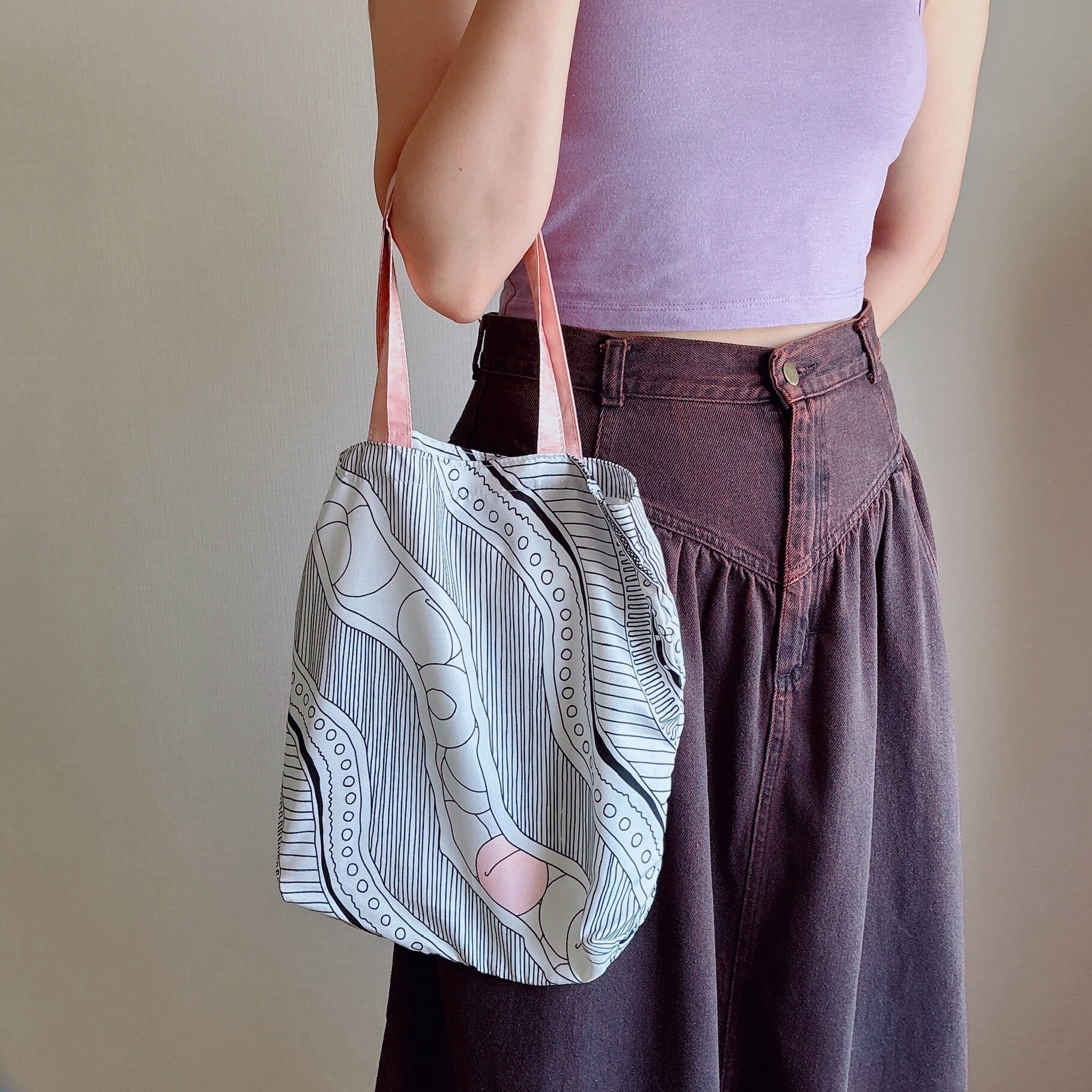 オリジナルテキスタイルの総柄エコバッグ付き